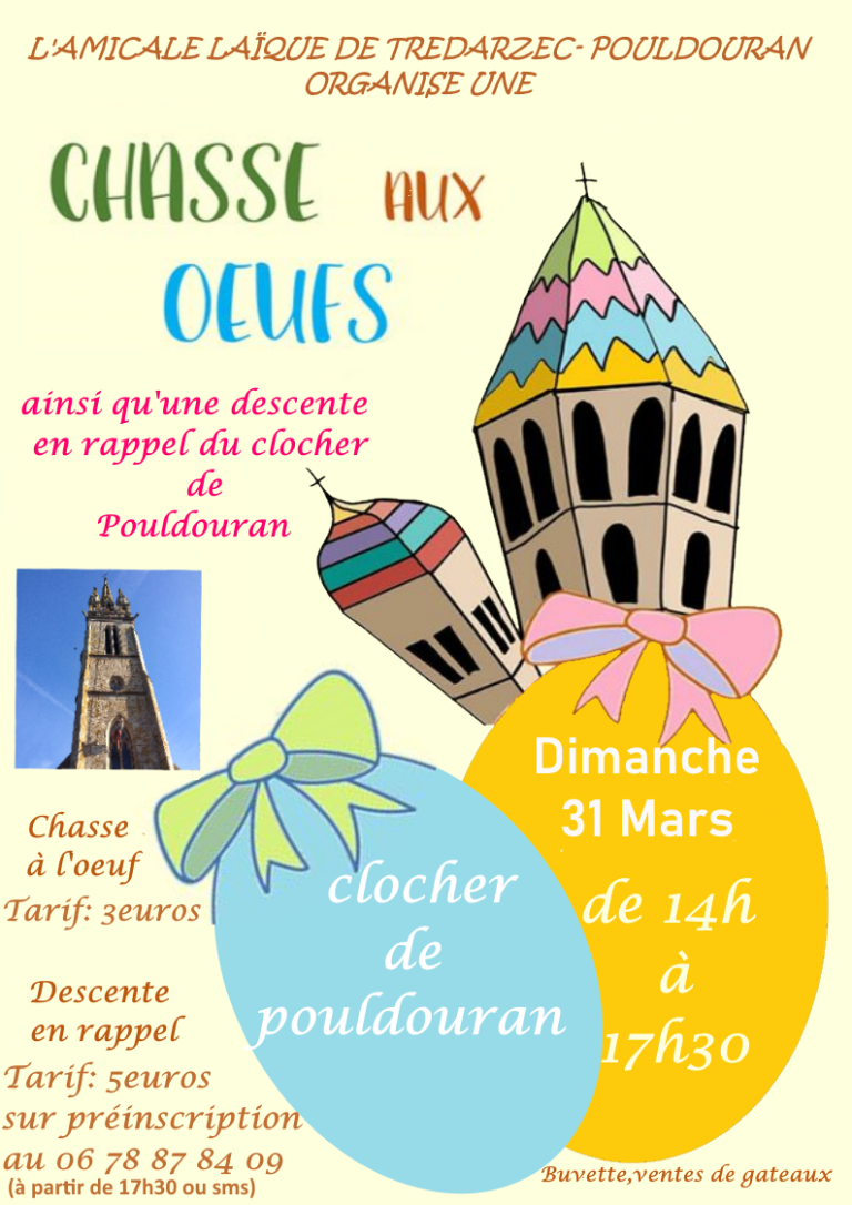 Chasse aux œufs et descente en rappel du clocher à Pouldouran