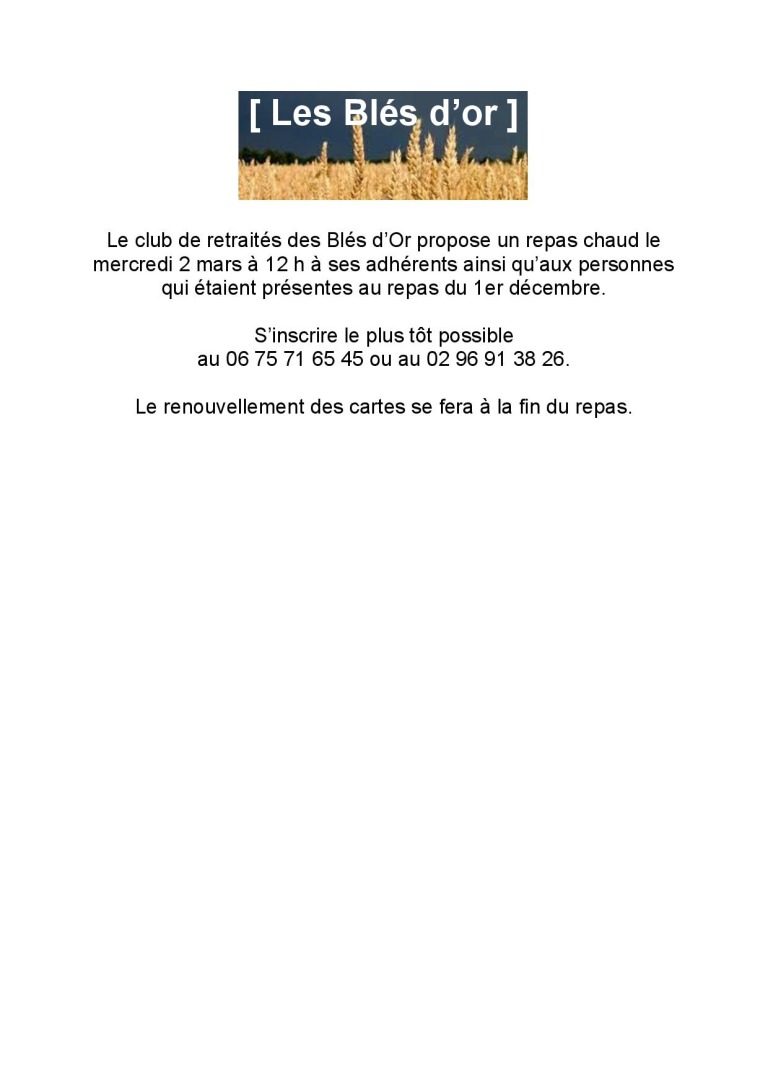 Repas avec le club Les Blés d’or à Pommerit-Jaudy