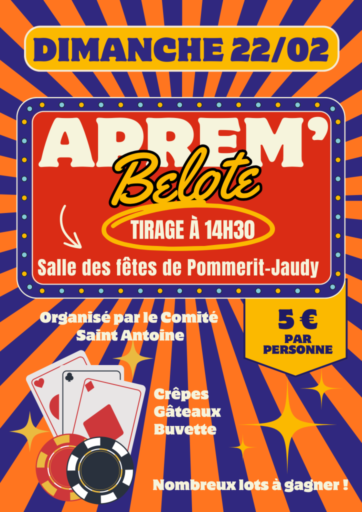 Aprem’Belote avec le Comité Saint Antoine Fév 22 14h30 - 17h00 Aprem’Belote avec le Comité Saint Antoine