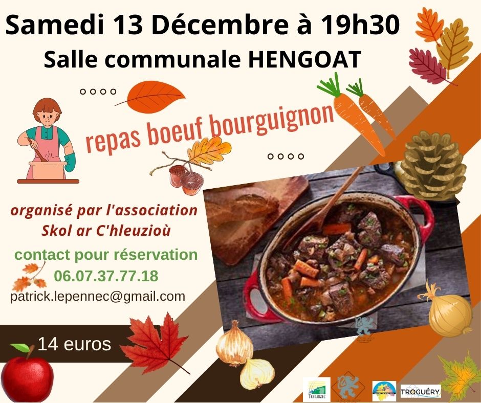 Repas bœuf bourguignon avec Skol ar C’hleuzioù Déc 13 19h30 - 23h30 Repas bœuf bourguignon avec Skol ar C’hleuzioù