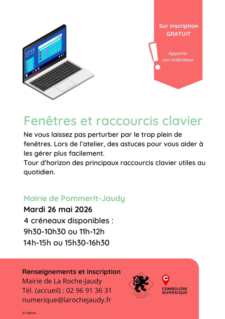 Atelier numérique – Fenêtres et raccourcis clavier Mai 26 Atelier numérique – Fenêtres et raccourcis clavier 14h00 - 16h30
