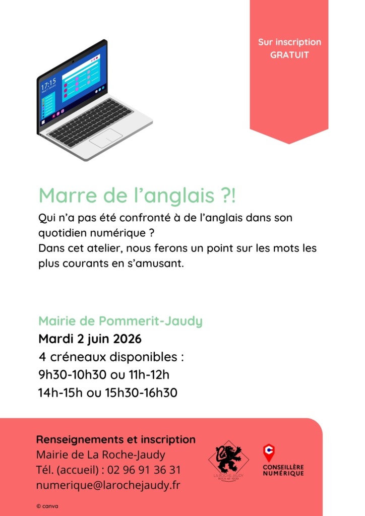 Atelier numérique – Marre de l’anglais ?! Juin 2 Atelier numérique – Marre de l’anglais ?! 9h30 - 12h00